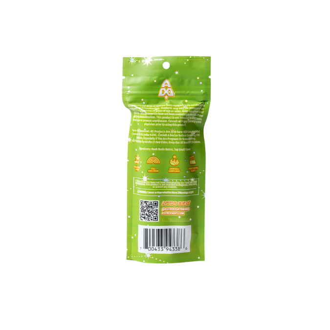Green Apple Asteroid (Indica): A soothing strain with a crisp, fruity apple flavor for deep relaxation. Each pre-roll contains 2 grams of premium THC-A flower and a core of potent hash batter, delivering an intense, sensory-elevating effect. With a total of 4 grams in every pack, these pre-rolls are designed for seasoned users looking for a powerful, well-balanced experience.