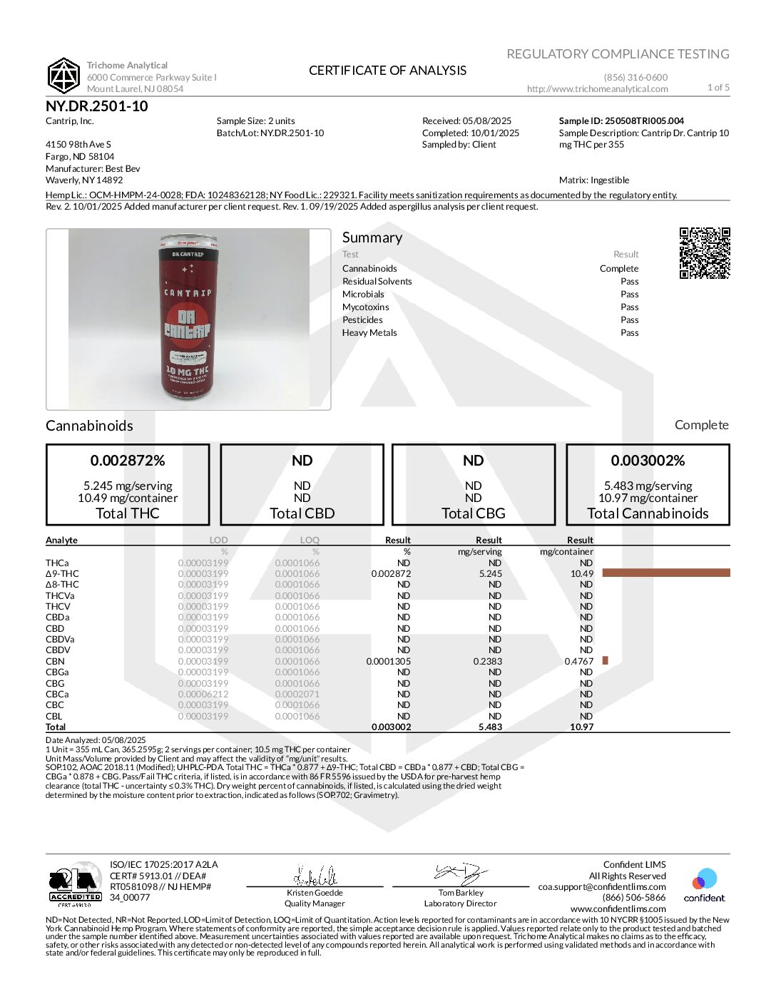 Ingredients: Carbonated water, cane sugar, natural flavors, phosphoric acid, d9 THC hemp extract, sodium benzoate (preservative), and potassium sorbate (preservative).