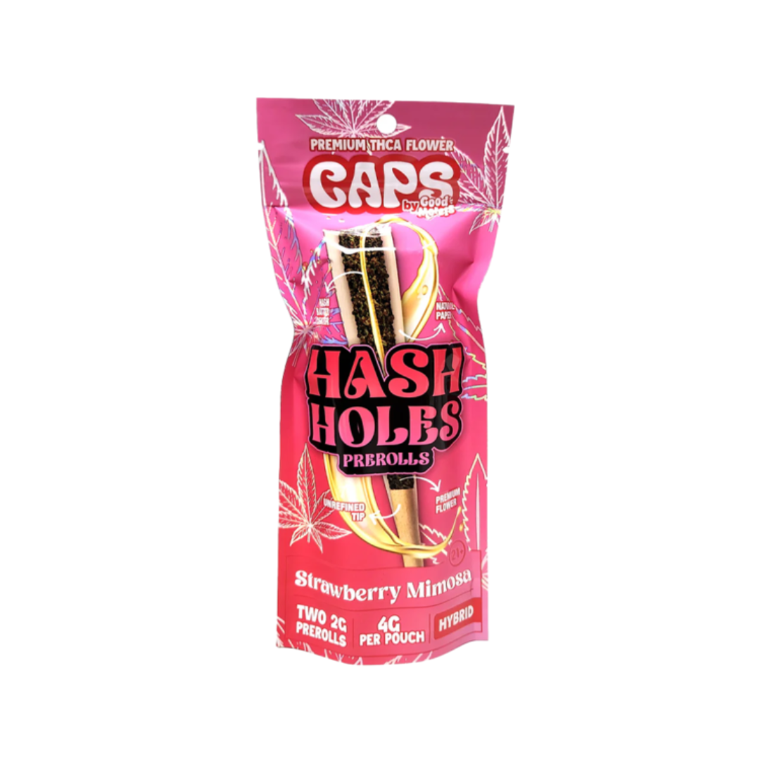 Caps By Good Morels Premium THCa Hash Holes Pre-Rolls come in an airtight resealable pouch. Every pouch contains two 2-gram pre-rolls packaged individually in doob tubes to ensure maximum freshness and convenience. Each pre-roll is packed with two grams of premium indoor-grown hydroponic hemp infused with THCa, CBD, and CBG. Every pre-roll has an infused center containing high-quality hash batter for even further flavor and potency—every strain clocks in at a crispy 30% THCa content or above.