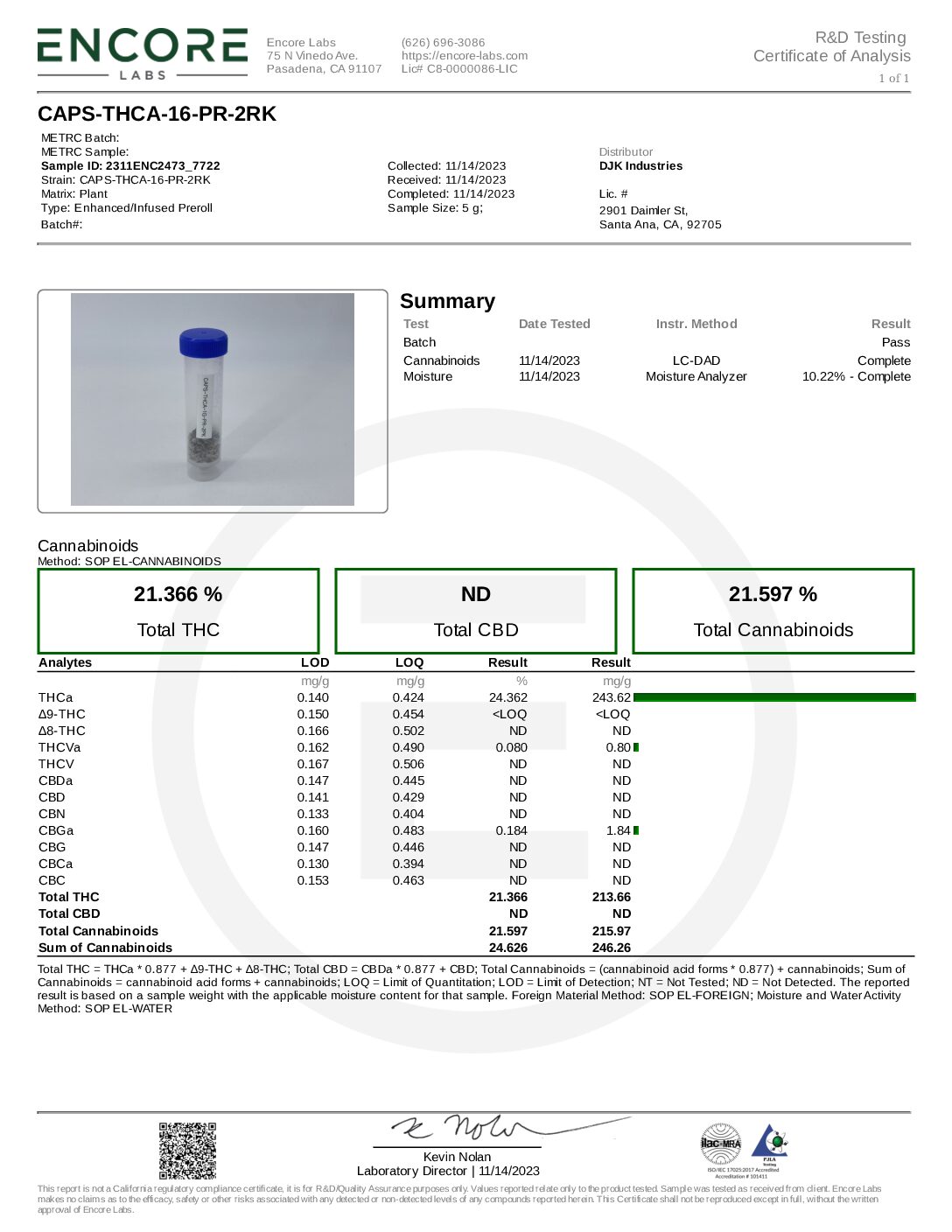 Ingredients: Full Spectrum THCA, Delta 9 & CBG.