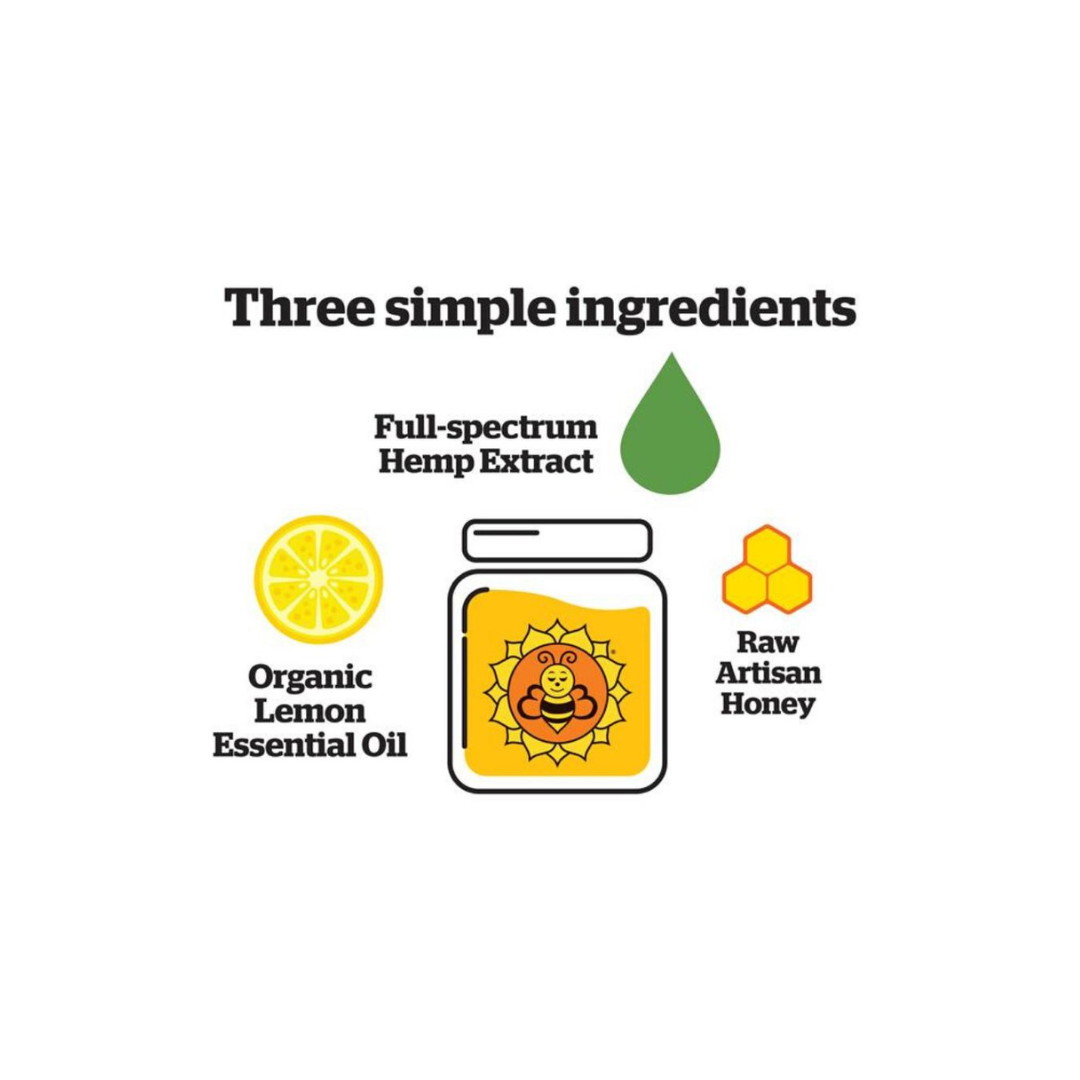 Ingredients: Raw honey, full spectrum hemp extract, organic lemon essential oil