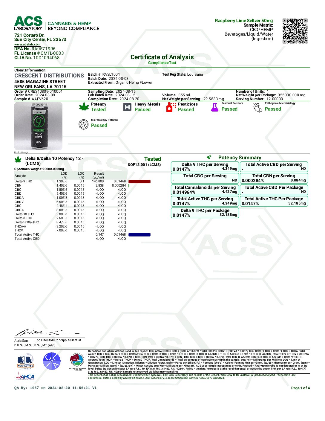 All of Crescent 9 THC drinks are full-panel lab-tested by an accredited laboratory to ensure quality, potency, and purity.