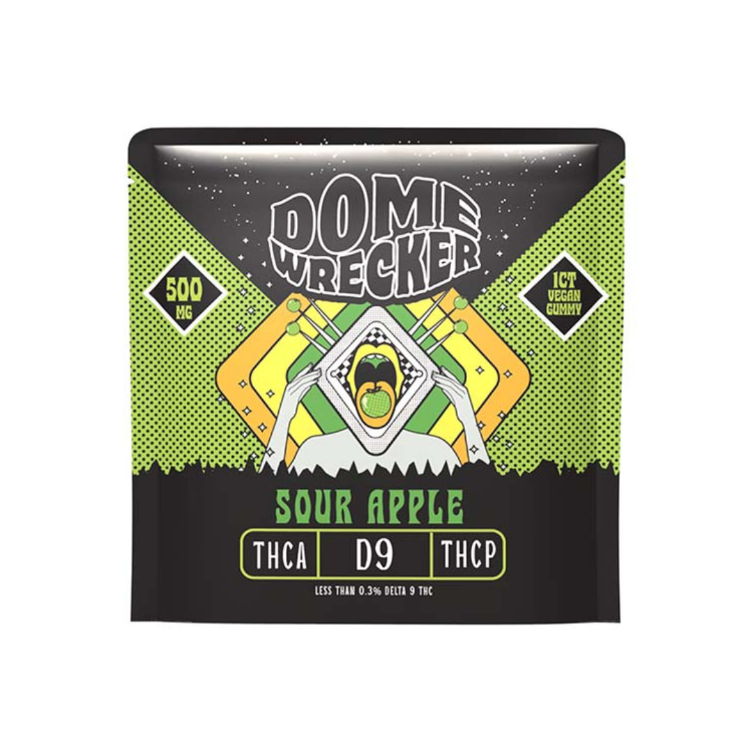Domewrecker THCa ,D9, THCP Gummies 500mg is a single-serve sample-size package of their THCa, D9, THCP 11000 Gummies. It is no secret that Domewrecker has exploded onto the scene, becoming a fan-favorite with their high-potency blend gummies. Because of its high potency, it’s advised to start with a fraction of a piece and proceed cautiously to avoid overconsumption.