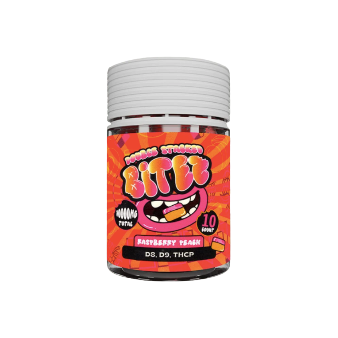 Indulge in the perfect balance of tart and sweet with our Raspberry Peach BITEZ gummies! Featuring a luscious combination of tangy raspberries and juicy peach, these double-layered treats deliver bold flavor with every chew. Infused with a potent mix of Delta-8, Delta-9, and THCP, each gummy boasts 1,000mg per piece, ensuring a long-lasting and blissful experience. With ten in every jar, your taste buds and senses are in for a treat!