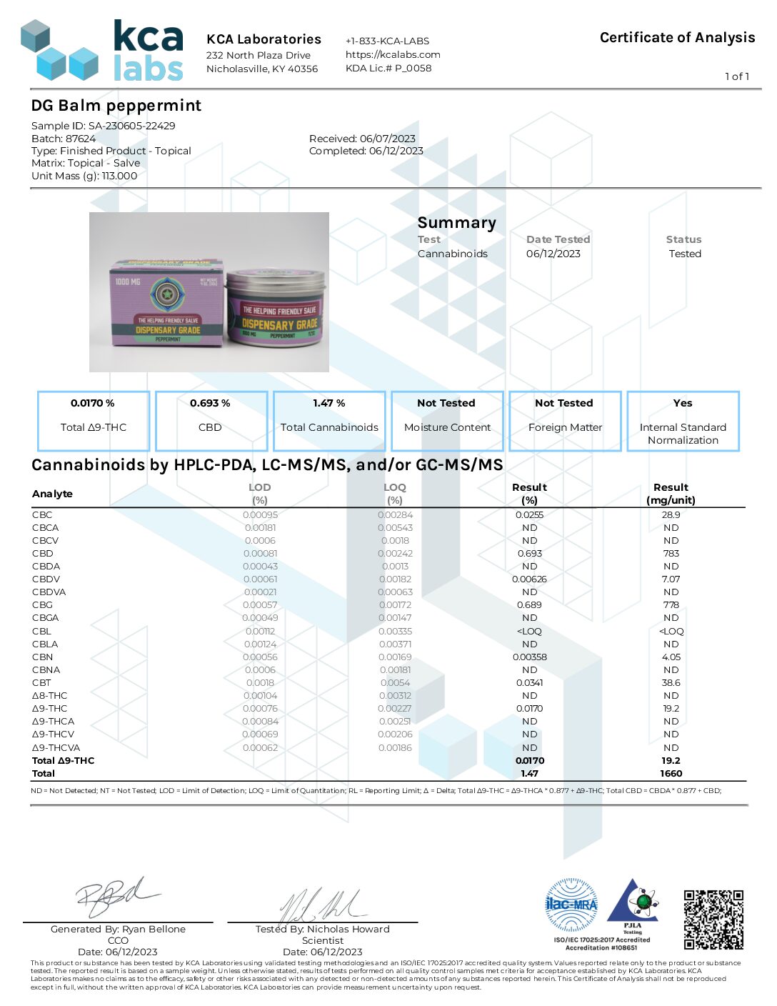 Ingredients: Hemp seed oil, Coconut oil, Avocado oil, Full spectrum hemp oil extract, Beeswax, Arnica oil, Peppermint