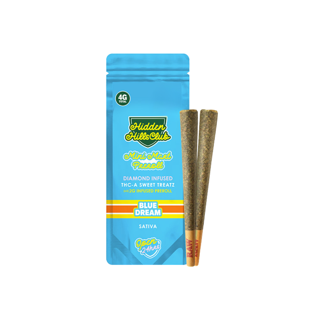 Hidden Hills keeps it elevated with the Mini Mart Pre‑Rolls, delivering premium THCa-infused sessions in a classy, powerful two-pack. Each joint contains 2 full grams—that’s a total of 4 g of potent, refined experience when wrapped together—infused with diamond-enhanced indoor-grown flower, meticulously lab-tested for purity and consistency.