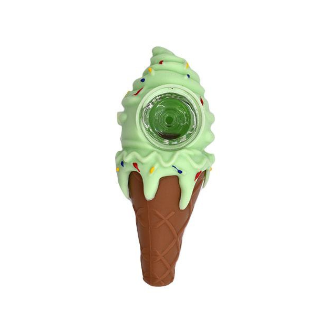 Ice Cream Cone 4″ Silicone Hand Pipe – Green