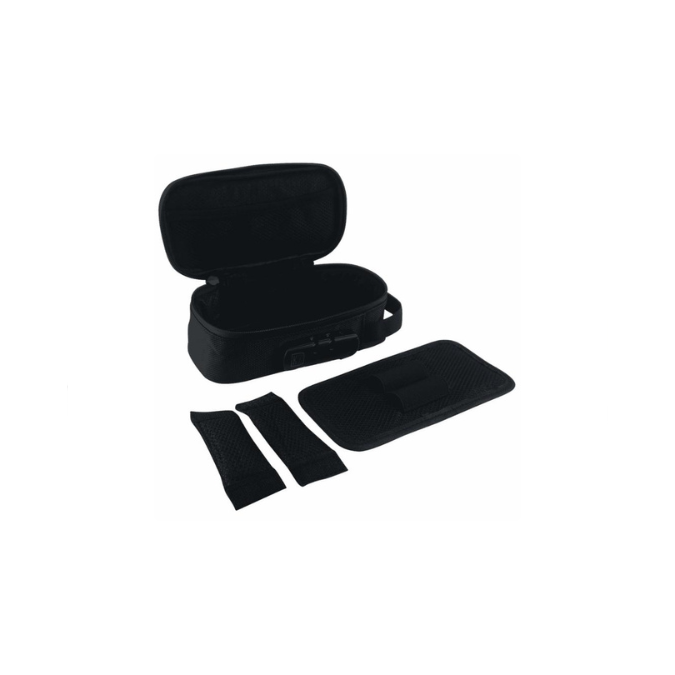 The Mini Revelry is the more portable version of the Revelry and is ideal for travel, home, or in a backpack. This compact, locking smell proof bag includes an outer hand strap and can easily be carried or transported, keeping your items private and portable. An outer mesh pocket provides storage for additional items. A three-digit combination zipper lock safely protects valuable items or medications from getting into unwanted hands. To help keep your items organized and secure, the Mini Revelry has two inner mesh pockets, two elastic straps, two removable dividers, and one removable lid.