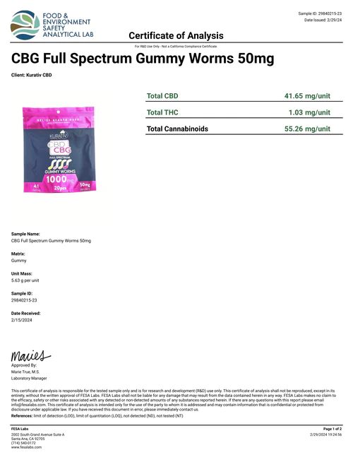Meet Kurativ’s Full Spectrum CBD / CBG Gummies. These gummies deliver the same great taste as their THC-Free version, with even more amazing cannabinoids. Each piece contains 4:1 cbd:cbg plus minor cannabinoids such as CBN,CBC,CBDV. Less than 0.3% THC.