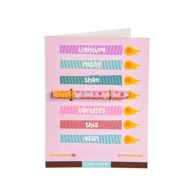 KushKards are colorful, clever, fun, and unique greeting cards for the cannabis enthusiast. In our technology driven world, people have an even greater appreciation for thoughtful handwritten tokens of love and appreciation, making KushKards the perfect present. KushKards are different from your everyday store bought variety, especially since they always have what you need a unique spot on each card to insert a pre-rolled item of your choosing and a complimentary match striker located on the bottom (that can be repeatedly used, btw). The recipient of your KushKard will never have to search for a lighter to enjoy their treat!
