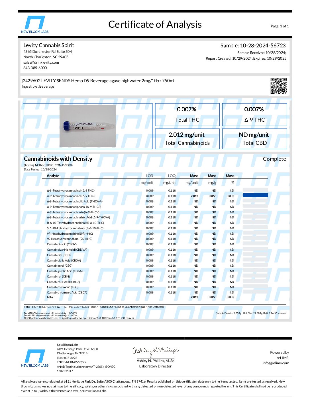 Ingredients: Water, Natural Flavors, Citric Acid, Hemp Extract, Potassium Sorbate, Stevia Leaf Extract