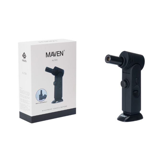 Elevate your torch game with the Maven Torch Lighter Alter – Black, a perfect blend of sleek design, powerful performance, and everyday practicality. Crafted with a modern matte-black finish, the Alter offers a bold, minimalist look that fits seamlessly into any setup. Its ergonomic form provides a comfortable, secure grip while delivering a strong, consistent single-jet flame ideal for sessions, cigars, candles, and precise heating tasks.