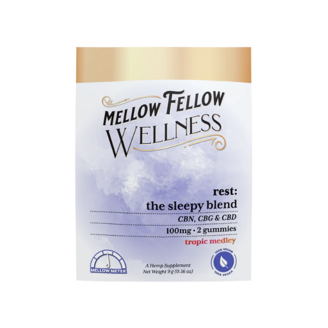 Long day at the office? Take a beat and mellow out with the Rest blend CBD gummies. With 50mg CBD, CBN, and CBG each, these gummies are expertly designed to help you unwind and de-stress. Each 50mg gummy has a burst of tropical flavors like pineapple, mango and citrus. With Rest, you can say goodbye to tossing and turning at night. Get yours and see why they’re the best CBD gummies for sleep and stress. Savor the taste of pure relaxation with Rest.