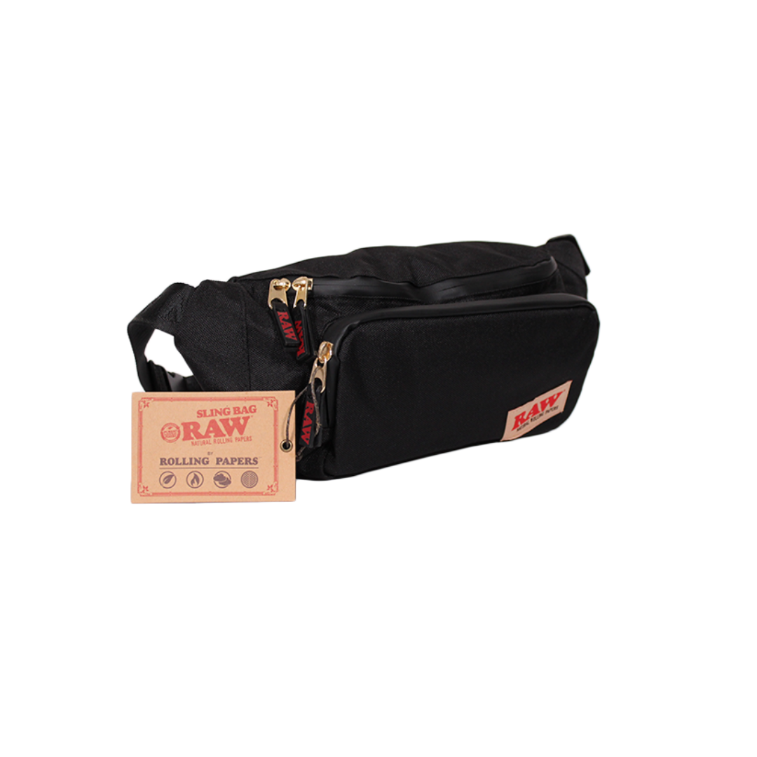 RAW x Rolling Papers Sling Bag can be used either over-the-shoulder or as a fanny pack. Intelligently designed for real smokers, it features multiple pouches, foil lining, smell-proof interior, hidden back zipper for storage, coated zippers and more! Just be sure you don’t forget where you hid your stash.