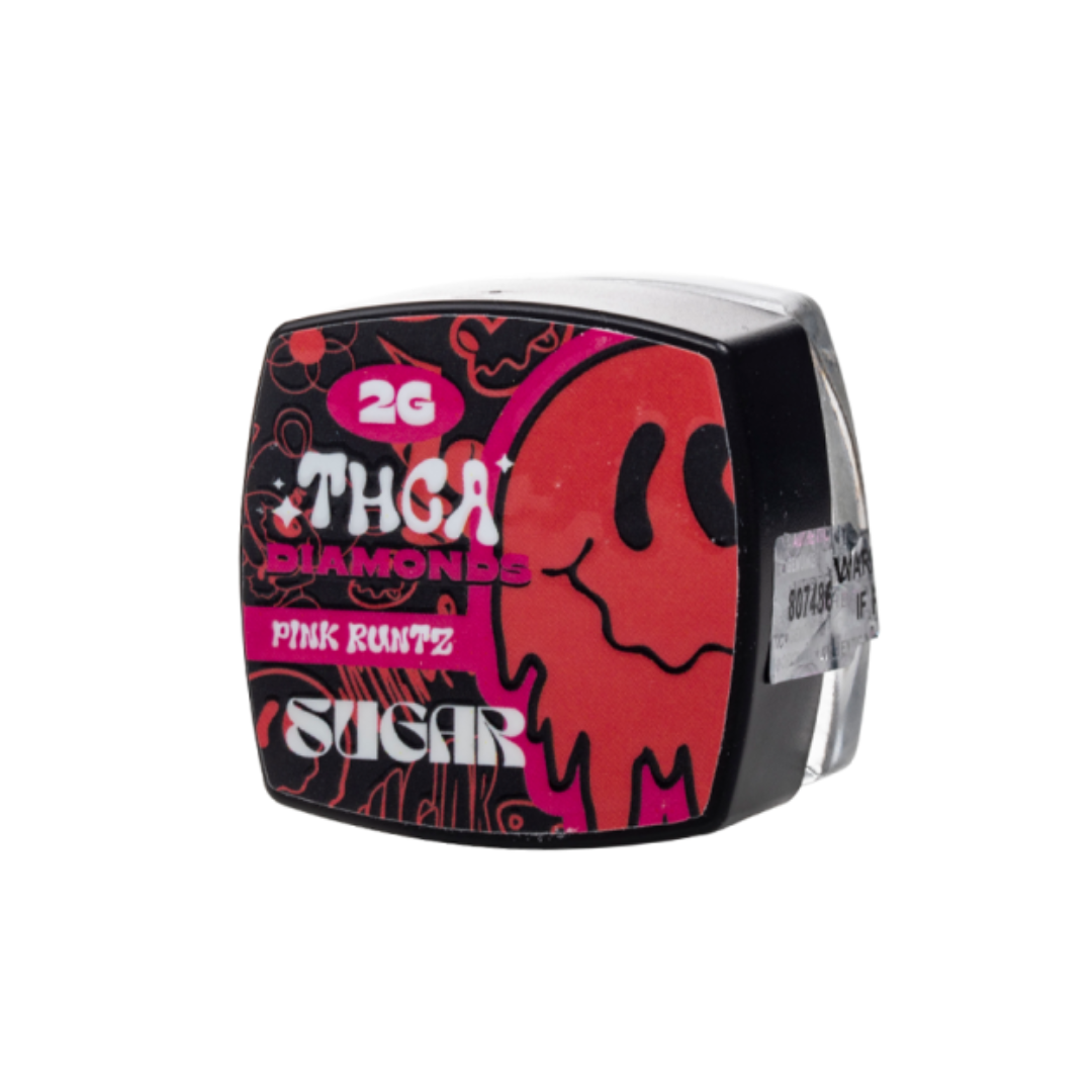 Sugar THCA Diamonds boast a whopping 96% THCA content with Hybrid Pink Runtz Live Resin terpenes that’ll hit you hard just like dispensary-grade Delta-9! This super-sized 2g dab is easy on the wallet, and easy to work with. Pink Runtz is a well-known balanced Hybrid strain that’s famous for its candy-like flavor profile. It’s sweet and fruity with uplifting effects that’ll keep you going. THCA is a very strong compound that converts into Delta-9 when heated, so it’s recommended to go slow until you know how you personally respond to the effects. Get a jar today, and enjoy in your dab rig, dab pen, concentrates vaporizer, or mix into a joint or a bowl for an intense, kicked-up experience!