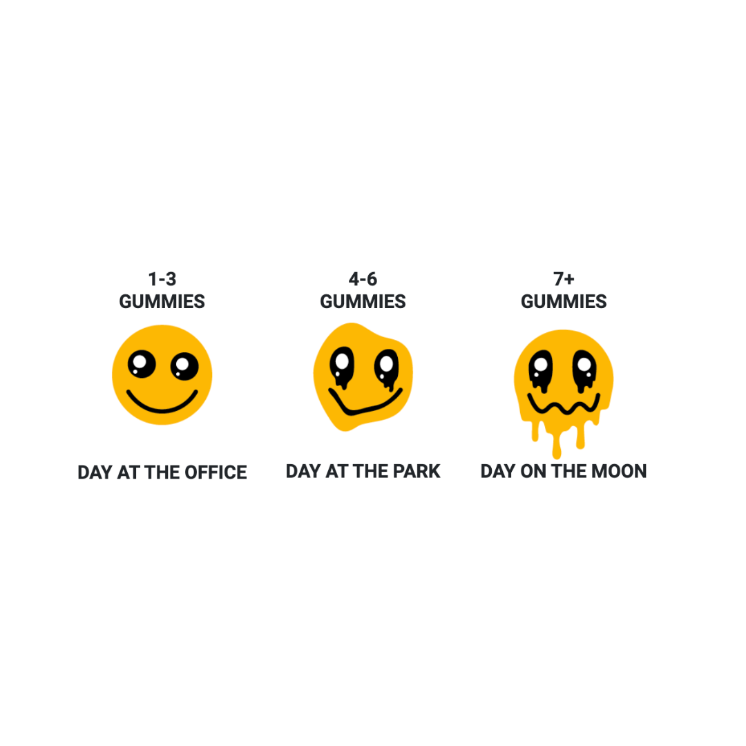 We recommend newcomers take no more than three gummies their first time. More experienced shroom lovers can teeter between four to seven gummies. And the most experienced space cadets can test their limits with seven or more, but this is only recommended to those who routinely vacation on Mars.