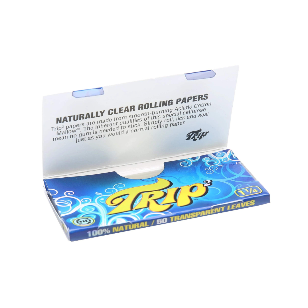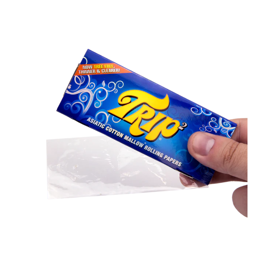 Completely transparent 1 1/4 size Trip rolling papers from Brazil are in (same paper as Aleda and other clear rolling papers. Different packaging). Made from natural vegetable cellulose, they have no glue (stick to themselves), burn very smoothly and leave little ash. Odorless, tasteless and 100% biodegradable.