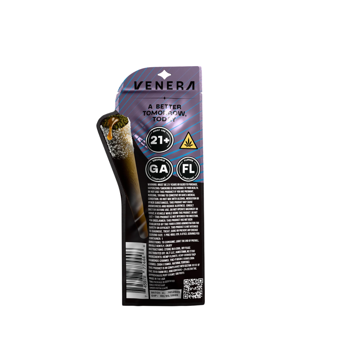 Experience the cosmos with Venera’s 2G Stardusted Donuts. Featuring a potent live resin core wrapped in premium exotic flower and finished with a signature stardusted tip, these heavy-hitting pre-rolls are designed for a slow burn and maximum intensity.