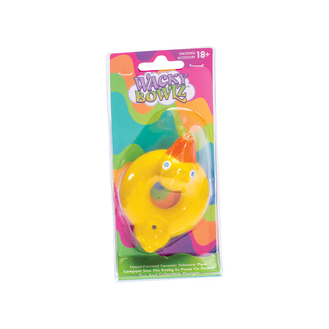Immerse yourself in the ultimate smoking experience with the Wacky Bowlz Ducky Life Saver Ceramic Pipe. This hand-painted ceramic pipe, measuring a compact 3.75 inches, is as functional as it is fun.