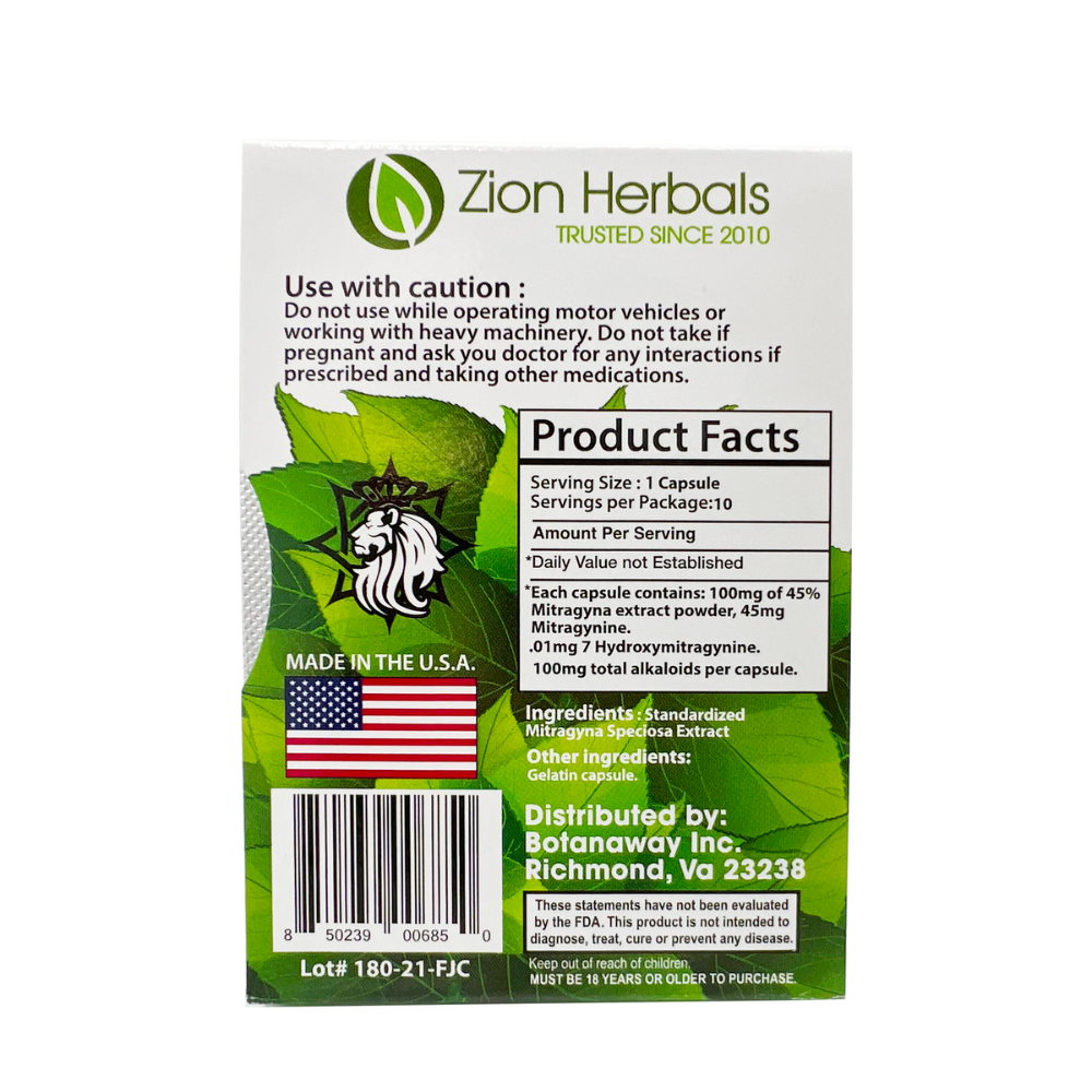 Good quality leaf powder contains approximately 1.25% Mitragynine. Zion Herbals 45% Mitragynine is 36 times more potent than leaf powder. Being a “Full Spectrum extract” means that it also still contains all of the other alkaloids and lipids that are found in the Kratom leaf. An enriched extract, the 45% gets to a point where we will start to lose some of the other alkaloids as the percentage of Mitragynine goes up beyond 45%.